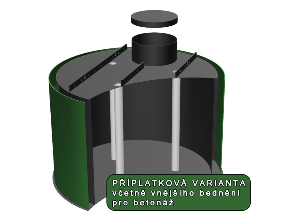 Nádrže se vyrábí z polypropylenových desek o tloušťce 5 a 8 mm se systémem vnějšího a vnitřního vyztužení. Nádrž je určena ke kompletní betonáži (boky+strop). Statiku zajišťuje až vyhotovená betonáž. Varianta k obetonování není určena do míst s výskytem podzemní vody nebo do míst s vysokým podílem jílovité zeminy (nad 70%). Hlavní funkce nádrže je zajištění nepropustnosti kapalin, kterou deklarujeme příslušným certifikátem.