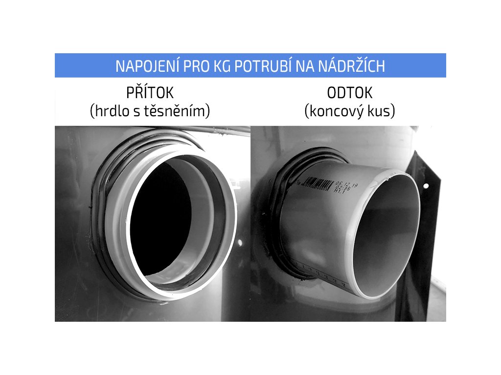 ✓ Napojení (přítok + odtok) v dimenzi DN 125 mm